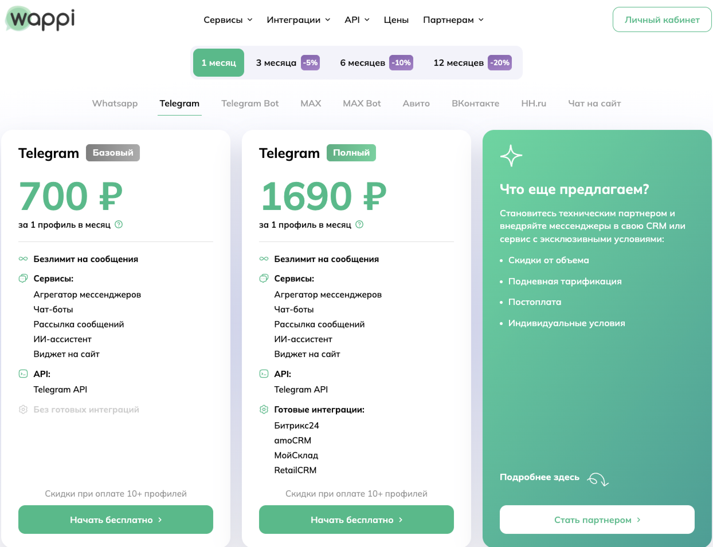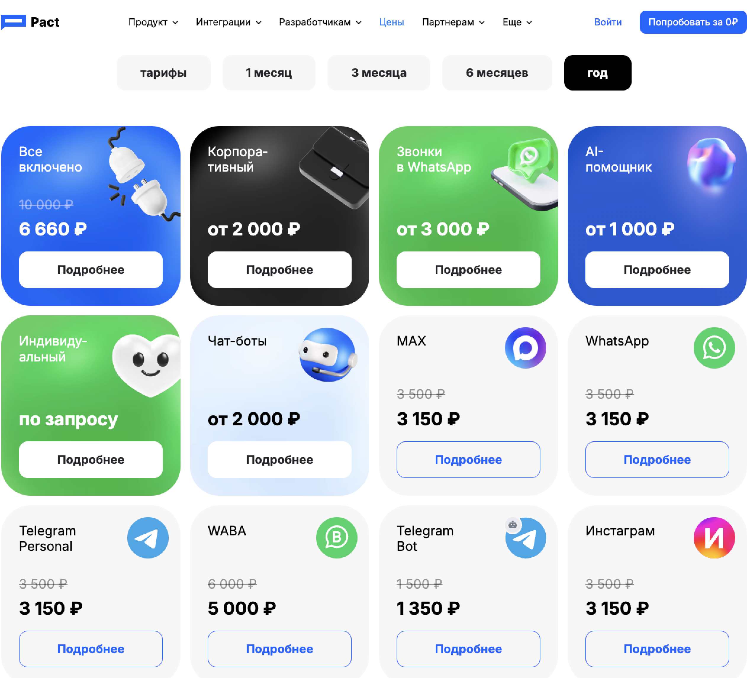 Есть тарифы без готовой интеграции от 700 ₽/мес., но их не рассматриваем