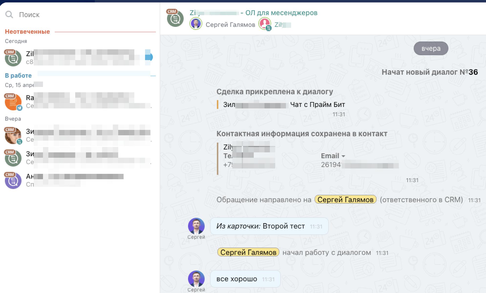 - История переписки остаётся в CRM. Руководитель и команда не зависят от телефона конкретного менеджера.