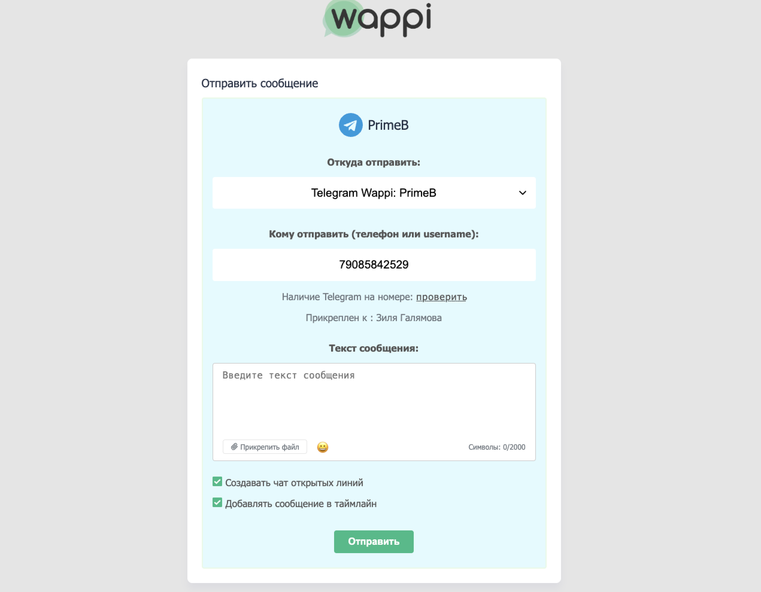 А вот как выглядит начало общения в сервисе Wappi.pro