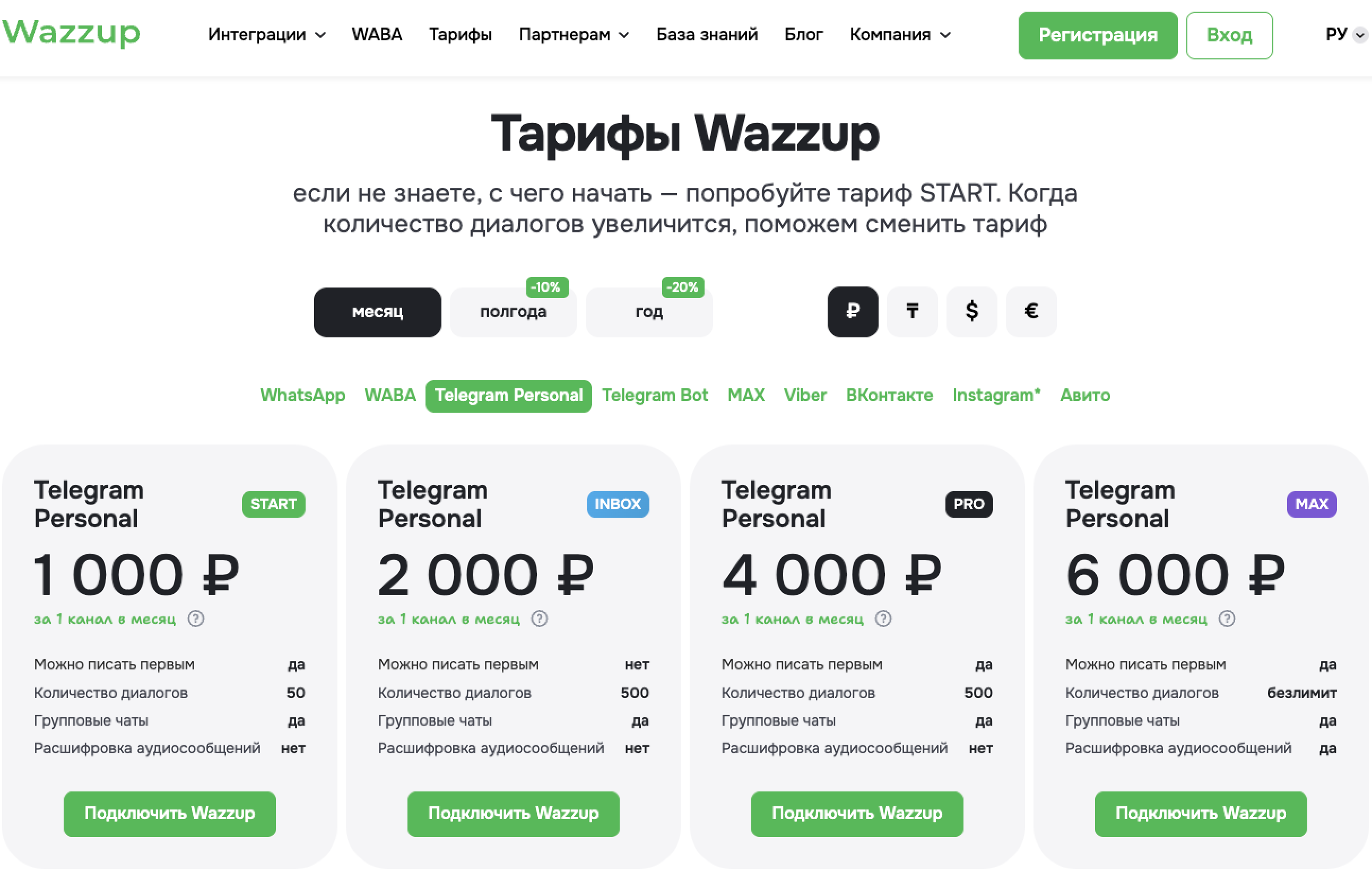 Тарифы Wazzup